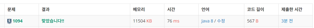 public class BJ1094 {