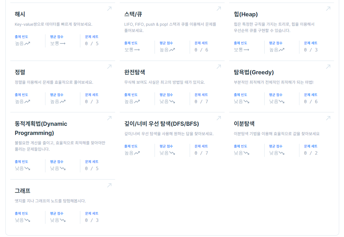 갑작스럽게 코딩테스트를 볼 일이 생길까 하여 급하게 프로그래머스 고득점 키트를 열어보았다.