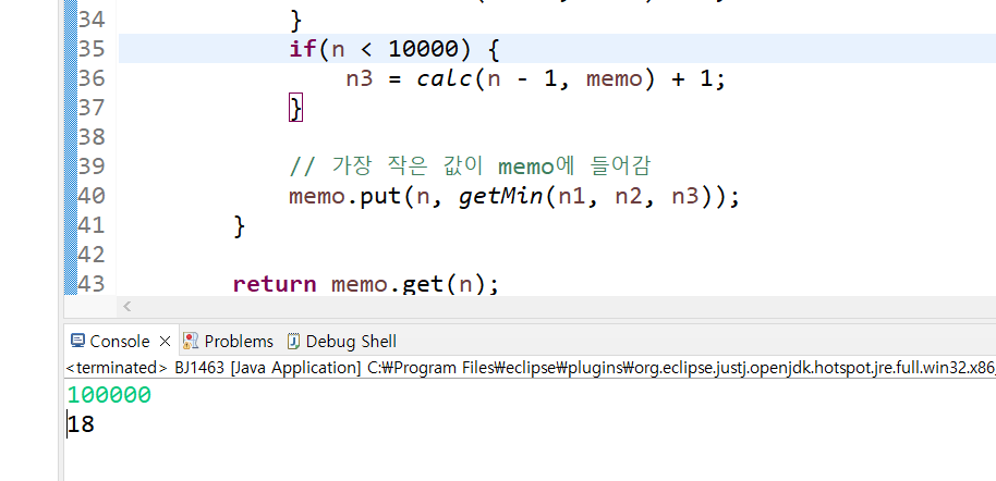 10000쯤되면 사실 계속 1씩 작아지는 연산이 최소연산일리 없다 생각해서 우선 조건 걸어버림. 답은 100000은 통과! 이게 맞는건지는 모르겠지만 ?!