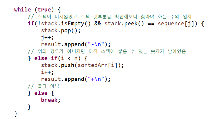 if(!stack.isEmpty() && stack.peek() == sequence[j]) {