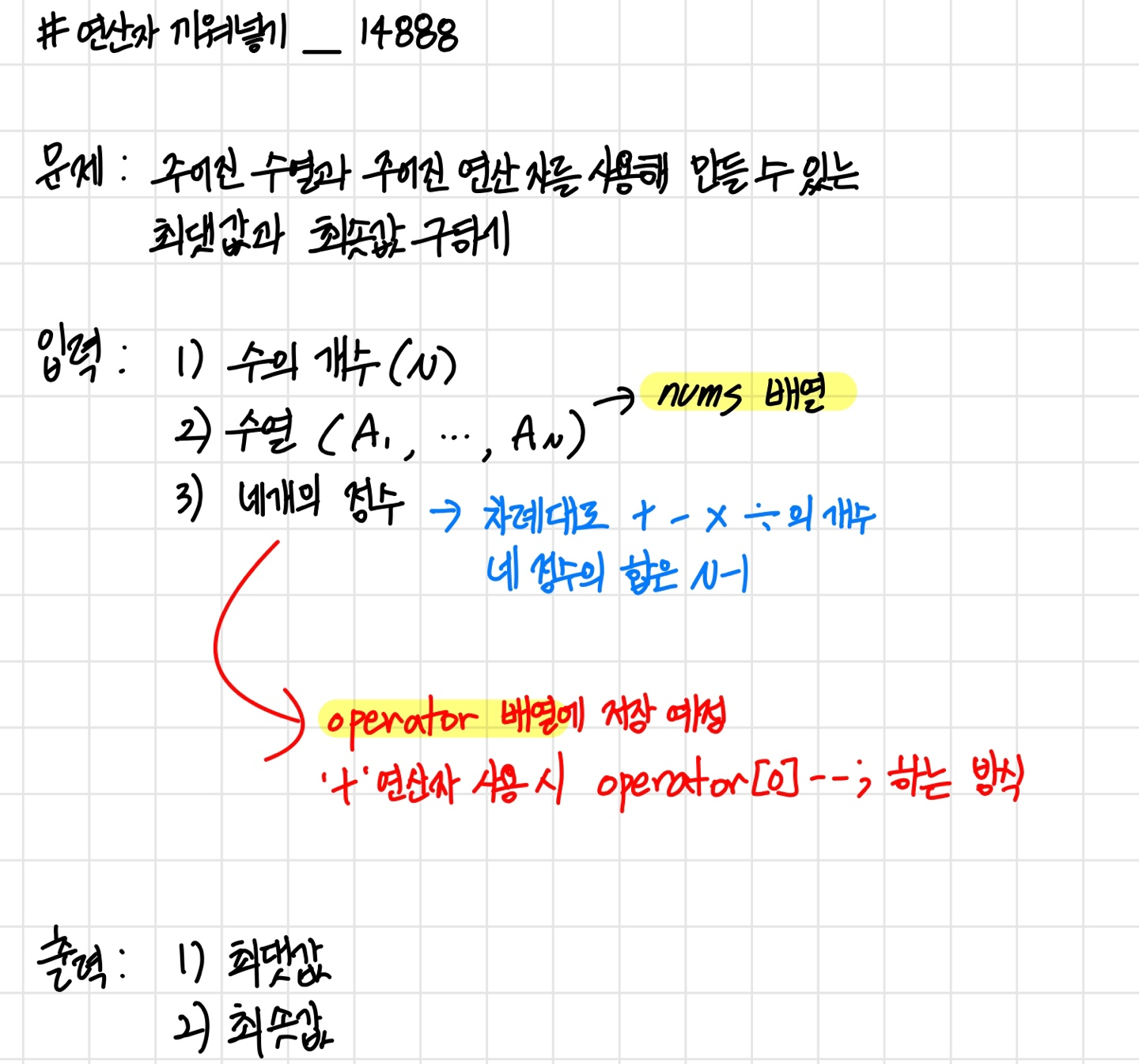 N개의 수로 이루어진 수열 A1, A2, ..., AN이 주어진다. 또, 수와 수 사이에 끼워넣을 수 있는 N-1개의 연산자가 주어진다. 연산자는 덧셈(+), 뺄셈(-), 곱셈(×), 나눗셈(÷)으로만 이루어져 있다.