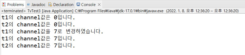 System.out.println("t1의 channel값을 7로 변경하였습니다.");