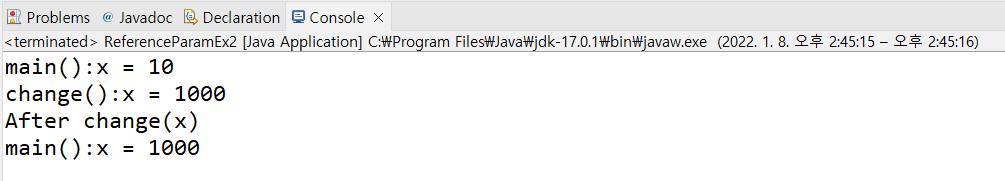 System.out.println("change():x = " + x[0]);